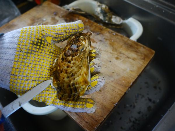 何故か?食べてますが、右の写真!山中君に牡蠣の開け方を伝授してもらいました!