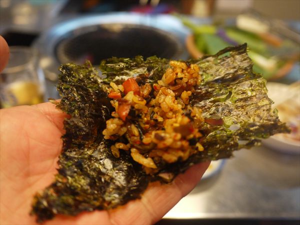 焼肉の時に焼かない、生野菜が結構でる。ねぎのようなものはにんにくだそうです。辛くてびっくりした。