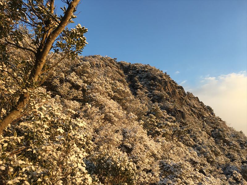 こう見ると積もってるようですが、やっぱうっすら。1時間後下山したら日陰を残して融けてなくなりました。