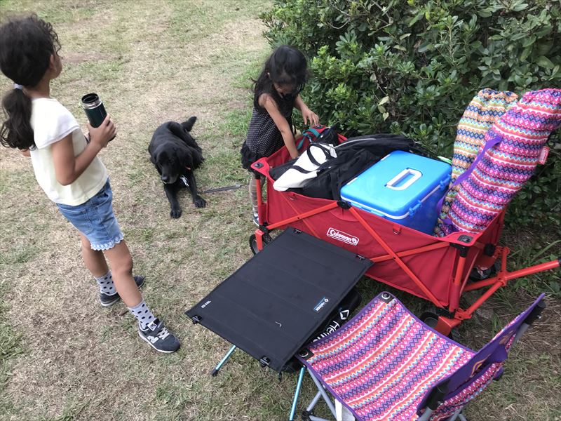 ベロア:子供達は遊具へと遊びに行っちゃうので大きな荷物の番犬に適任だったのですが、