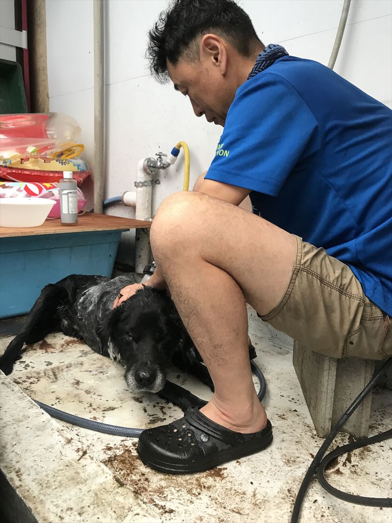 最終的には糞尿の水溜りの中に寝ている状態だったので、まあ、よく洗いました。