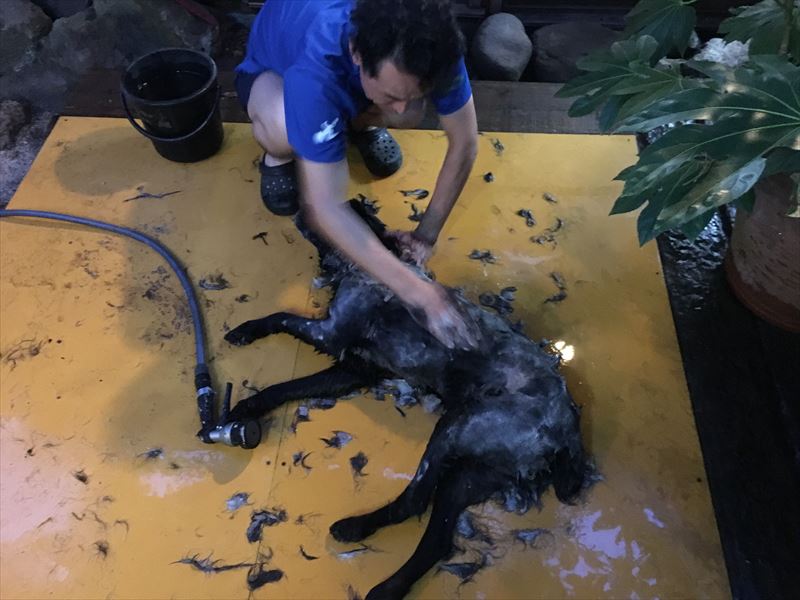 最終的には糞尿の水溜りの中に寝ている状態だったので、まあ、よく洗いました。