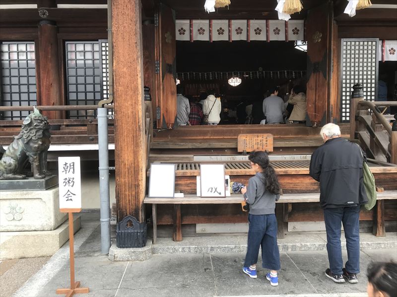 天神様の朝粥会です。普通の月は1日だけど、1月は初詣なんかで忙しいから?1月7日です。