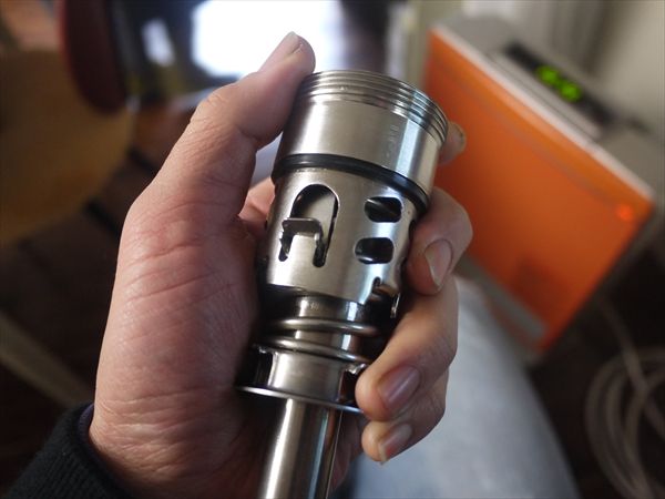 スピアバルブという樽の留め具。外した後分解(要専用道具)して洗い&除菌。樽はペットボトル用のたわしで、やはり洗い&除菌。