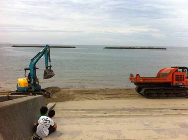 防府盛り上げ隊のクリーン作戦時に行われていた砂の移動