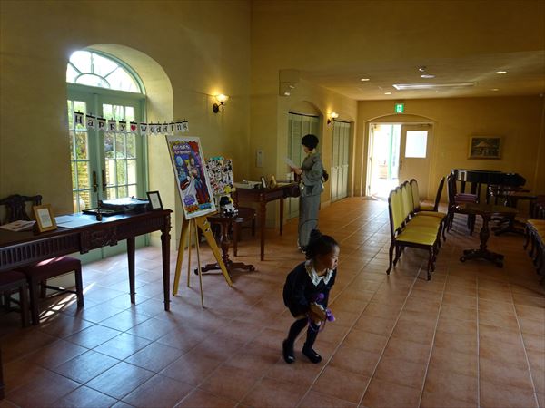 少し遅かったか?挙式が始まっているようで、受付含め誰もいません・・・。