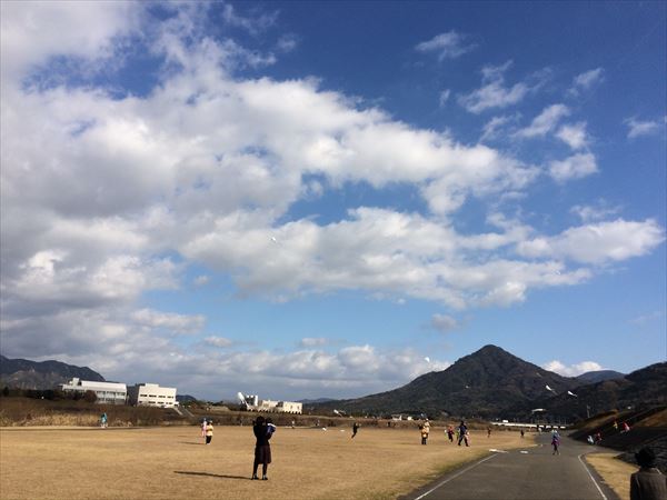 お前らアホやろ!と突っ込みを入れたくなるほど高い人口密度での凧揚げ。