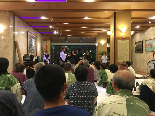 写真は終了後懇談会には出席せず、玄関先で行われていた”おかみ劇場”