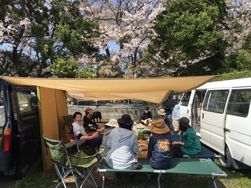 直射日光はまずいということで急遽車で囲んで屋根を設置。