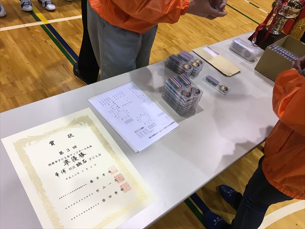 実はこの大会ドッチボールだけではなくて、ポートボールとの2種目。よりいろんな人が参加出来るようにドッチボールがあるようですが、ポートボールは審判団が仕切っているので、子供会はみんなでドッチボールを管理。