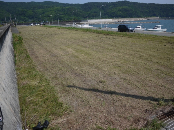 富海で青空Tシャツ展で使用させていただく駐車場予定地の除草を行いました。