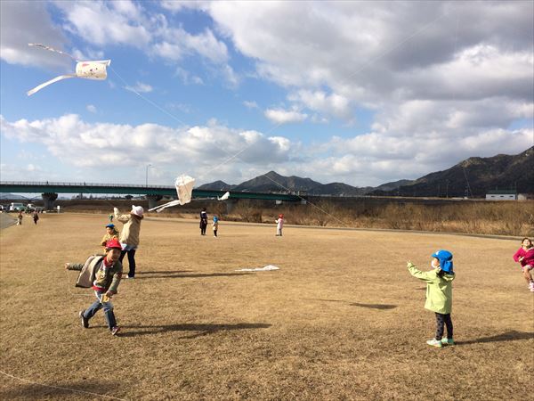 佐波川河川敷で凧揚げ (2015年01月08日)