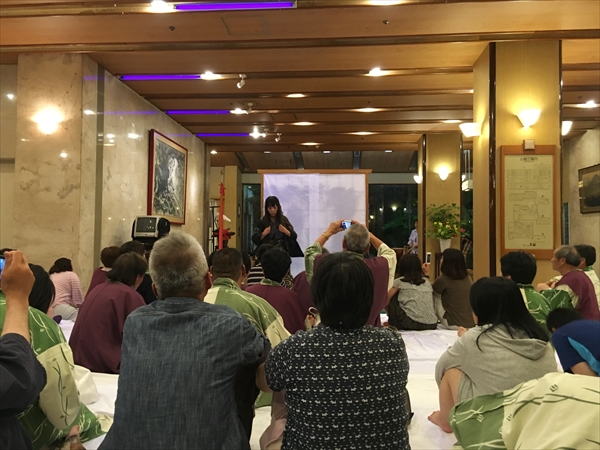 写真は終了後懇談会には出席せず、玄関先で行われていた”おかみ劇場”