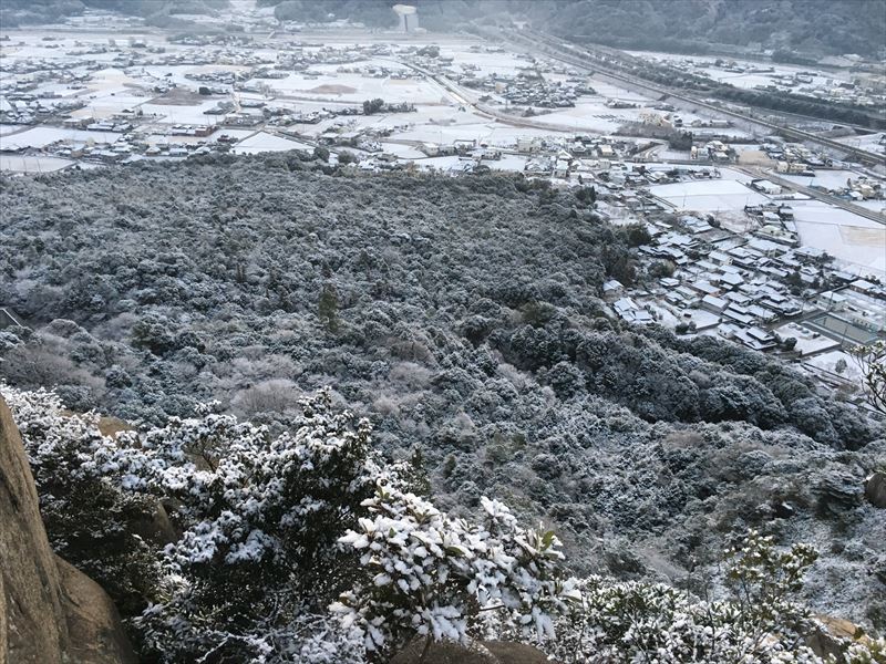 こう見ると積もってるようですが、やっぱうっすら。1時間後下山したら日陰を残して融けてなくなりました。