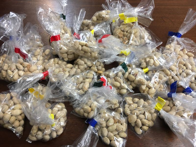 中に飴の入った重たい豆が近くに飛んできた、少ないチャンスをいかして1個だけゲット。