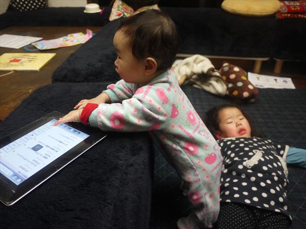 すると家内が起きてきて、その横に。