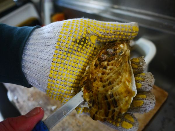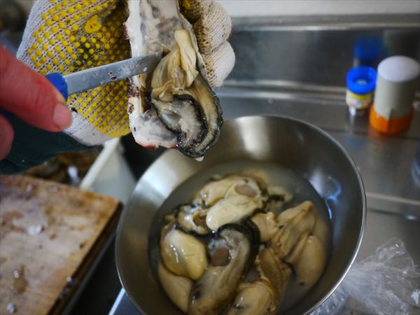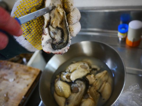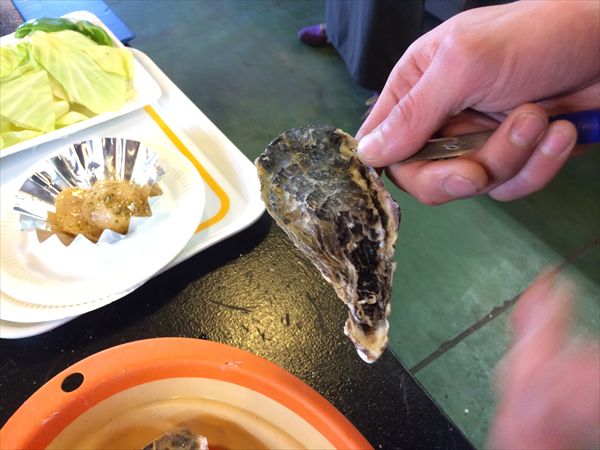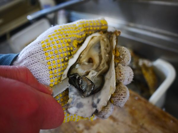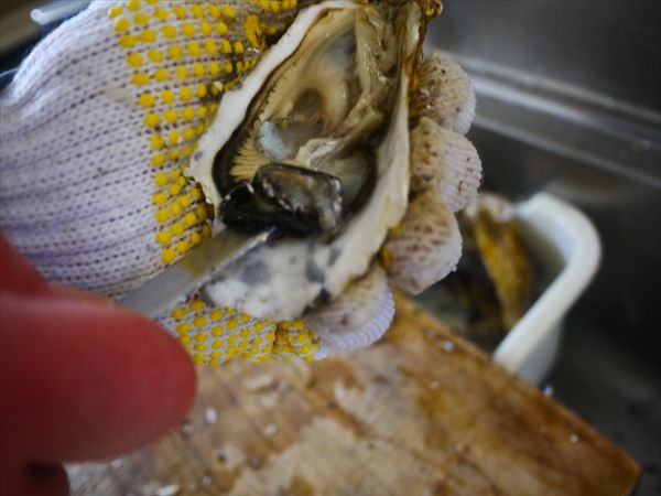 何故か?食べてますが、右の写真!山中君に牡蠣の開け方を伝授してもらいました!